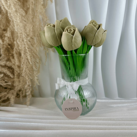 Ramo de Tulipanes Aromáticos en Cera de Soya con Florero